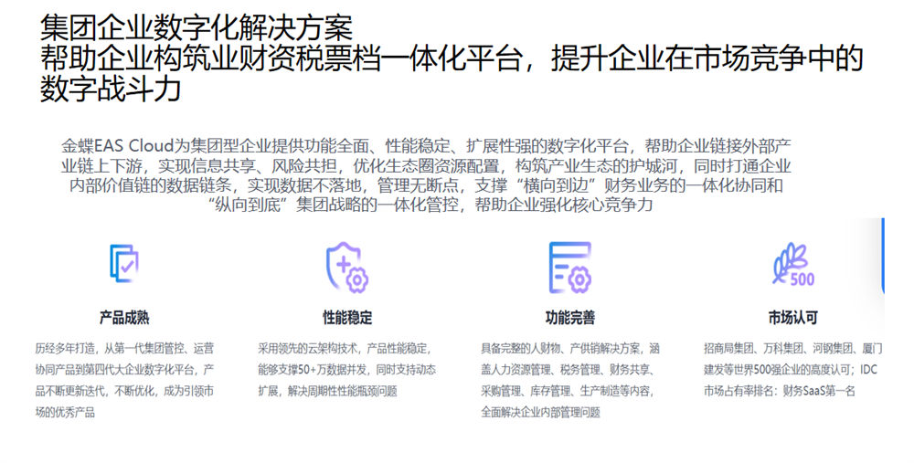 金蝶Eas Cloud帮助企业构筑业财资税票档一体化平台,提升企业在市场竞争中的数字战斗力